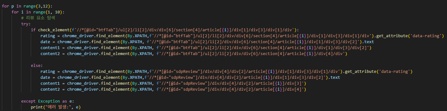 → 이후 정상적으로 리뷰 영역 탐지 가능