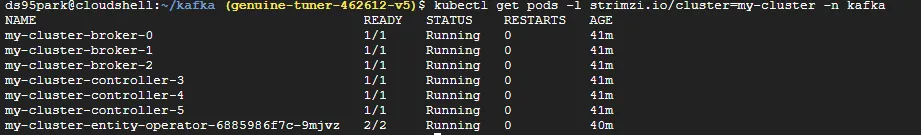 kubectl get pods -n kafka -l strimzi.io/cluster=my-cluster