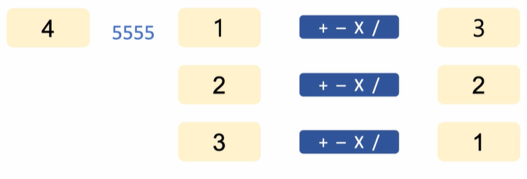 1. N = 5 일 때 N을 1번만 사용할 경우, 2번 사용할 경우를 구함 (2를 구하면 55, 10(5+5), 0(5-5), 25(5x5), 1(5/5) 이 나옴)