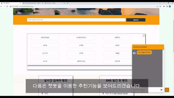 저희팀은 제주도 관광지를 키워드와 챗봇 기반으로 추천해주는 웹사이트를 주제로 선정했습니다.