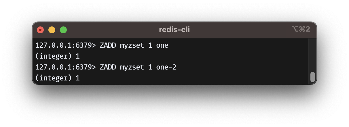 - ZADD 새로운 member를 score 값과 함께 추가한다. 이미 존재하는 member라면 score를 업데이트 한다.