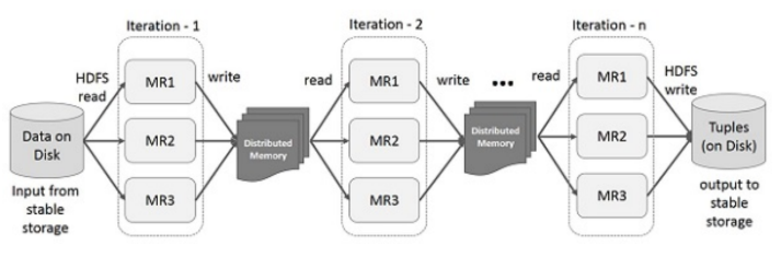 - (iterative operation) 각 stage 사이마다 일어나는 data read/write 과정에서 data 복제, disk I/O, serialization으로 오버헤드가 증가한다.
