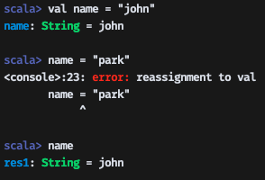 - 스칼라 코드는 자바 바이트코드로 변환될 수 있음(JVM이 읽을 수 있는 자바가 컴파일된 결과인 .class 파일이 있으면 scala도 읽을 수 있음, 100% 호환은 아님)